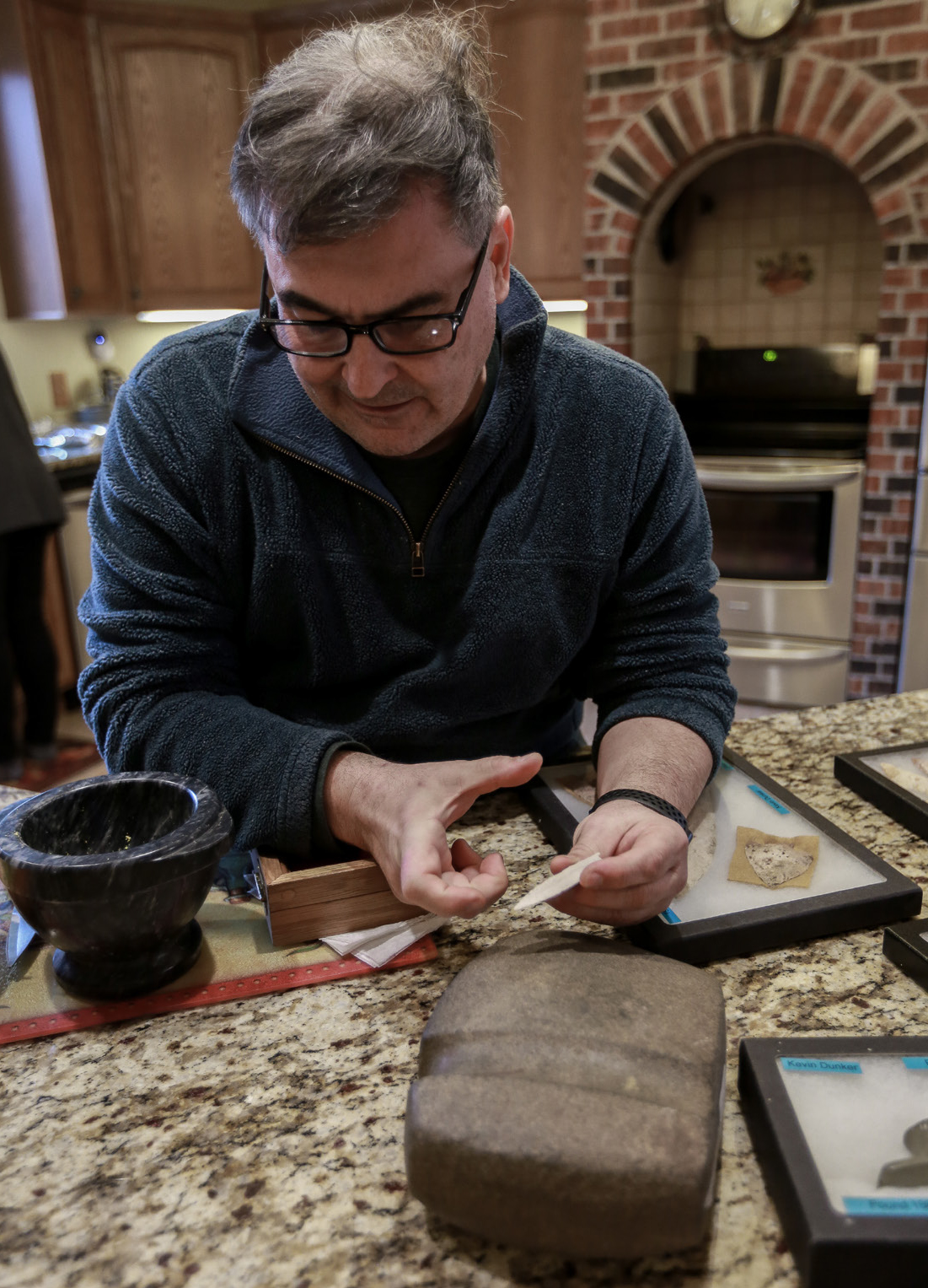 “I became interested in it by reading about it, and I see a lot of farmers as patients, so then I started asking them. Generally, they know the places to go to search, where the sites are to find this stuff. Usually in the spring and the fall, after it rains and when the fields are being plowed, I’ll go out and walk, usually two-three hours at a time. Many times, Ayca and the children, when they were home, have come with me.”
